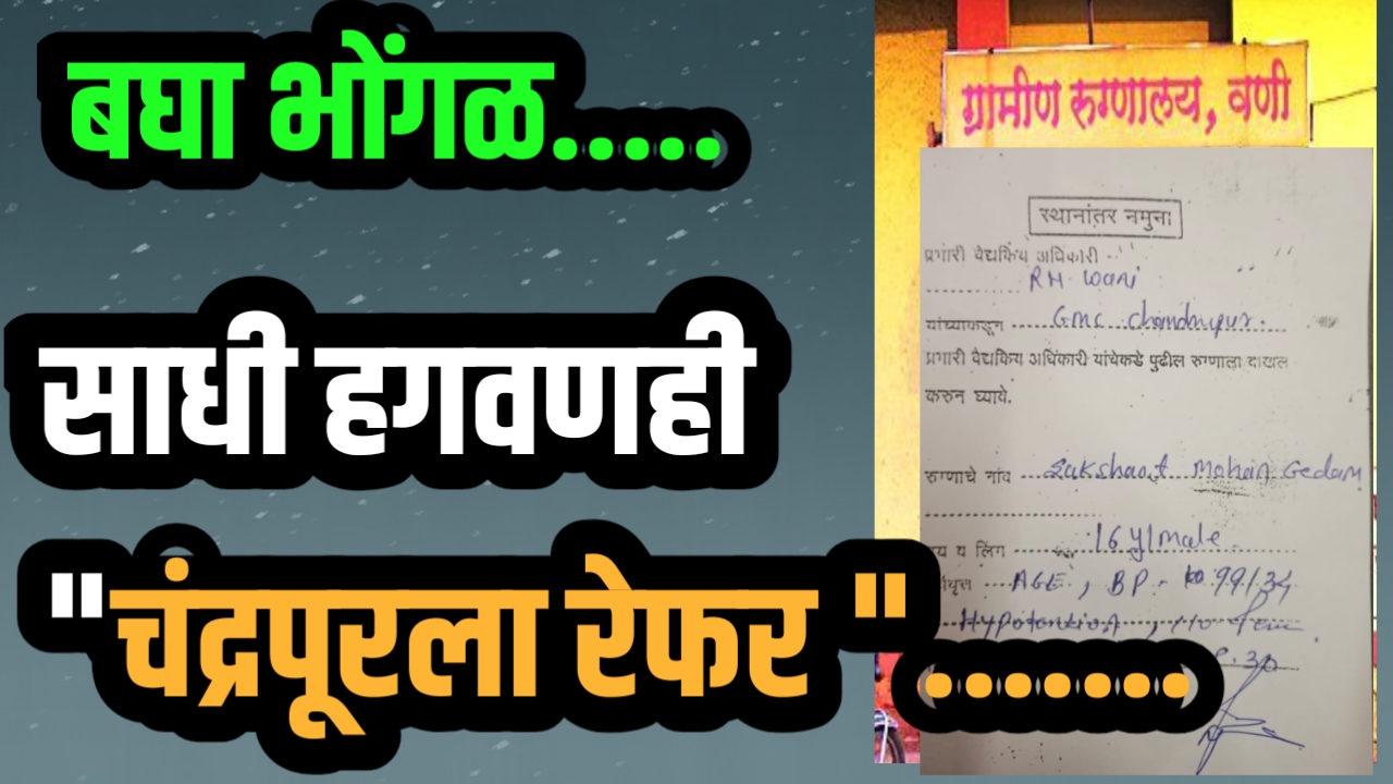 त्यानंतर त्या रुग्णाला वणीतील एका खासगी दवाखान्यात दाखल करण्यात आले. विशेष म्हणजे अवघ्या दोन तासांच्या उपचारात रुग्णाला आराम मिळाला, मात्र या उपचारासाठी त्या गरीब कुटुंबाला 1200 रुपये खर्च करावे लागले. सरकारी रुग्णालयात जे उपचार होऊ शकले असते, त्यासाठी खासगी दवाखान्याचा आधार घ्यावा लागणे ही गंभीर बाब आहे.जर हगवण, अपचन, ताप, पोटदुखी अशा छोट्या आजारांसाठीही चंद्रपूर रेफर दिला जाणार असेल, तर वणी ग्रामीण रुग्णालयाचा उपयोग काय? असा थेट सवाल आता नागरिक विचारत आहेत. त्यामुळे हे रुग्णालय बंद करून त्याला “चंद्रपूर रेफर केंद्र” असे नाव द्यावे, अशी उपरोधिक पण संतप्त मागणी जनतेतून होत आहे.एकीकडे ग्रामीण भागात रस्ते नसल्याने वेळेवर उपचार न मिळाल्याच्या शोकांतिका घडत असताना, दुसरीकडे सर्व सुविधा असूनही आरोग्य सेवेचा बोजवारा उडाल्याचे चित्र वणी ग्रामीण रुग्णालयात दिसून येत आहे. हे रुग्णालय आता केवळ मलमपट्टी, ताप-खोकला यापुरते मर्यादित राहिले असून इतर रुग्णांच्या हातात “रेफर टू चंद्रपूर”चे कागद देऊन बोळवण केली जात आहे..