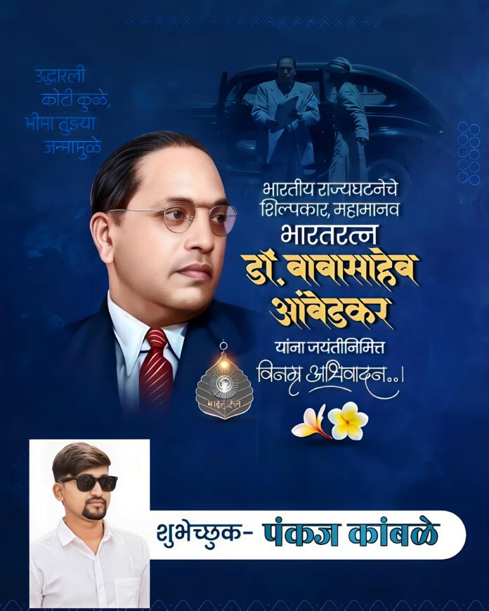 भारतीय राज्यघटनेचे शिल्पकार, भारतरत्न डॉ. बाबासाहेब आंबेडकर यांच्या जयंतीनिमित्त आज संपूर्ण परिसरात उत्साहाचे वातावरण आहे. या मंगलमयी दिनाचे औचित्य साधून सामाजिक कार्यकर्ते पंकज धर्मदास कांबळे यांनी सर्व देशवासियांना शुभेच्छा दिल्या आहेत.