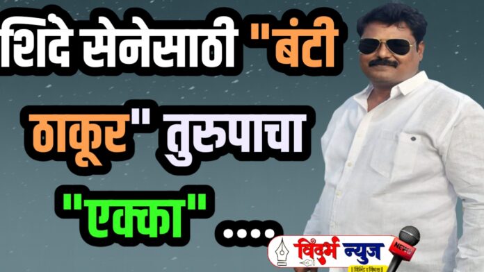 Ajay Kandewar, Wani :- शिवसेना (एकनाथ शिंदे गट) ने आपल्या मिशन टायगर मोहिमेत महत्त्वाची चाल खेळली त्यात काँग्रेसमधील खंबीर नेतृत्व, युवकांची मोठी फळी आणि समाजात मजबूत पकड असलेले बंटी ठाकूर यांनी नुकताच धनुष्यबाण हाती घेत शिंदे सेनेत जाहीर प्रवेश घेत ग्रँड एंट्रीच केली. कारण येत्या निवडणुकीचा काळात “बंटी ठाकूर – शिंदे सेनेच्या वणीतील “तुरुपाचा एक्का” ठरेल यात शंका नाही.
